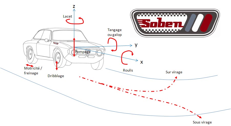 A la réception d’une bosse ou lors simplement d’un délestage, l’arrière de la voiture vous projette en avant vers le haut. Vous avez l’impression de vous faire jeter par la voiture, c’est le phénomène du coup de raquette.