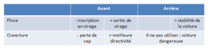 Si vous avez des doutes sur les réglages vous pouvez repartir des réglages d’origine qui généralement ont été pensés par les concepteurs de la voiture pour être sécurisant. Vous pouvez les faire évoluer, dans la mesure du possible physique et réglementaire, vers ceux que nous donnons à titre d’exemple ci-dessous :